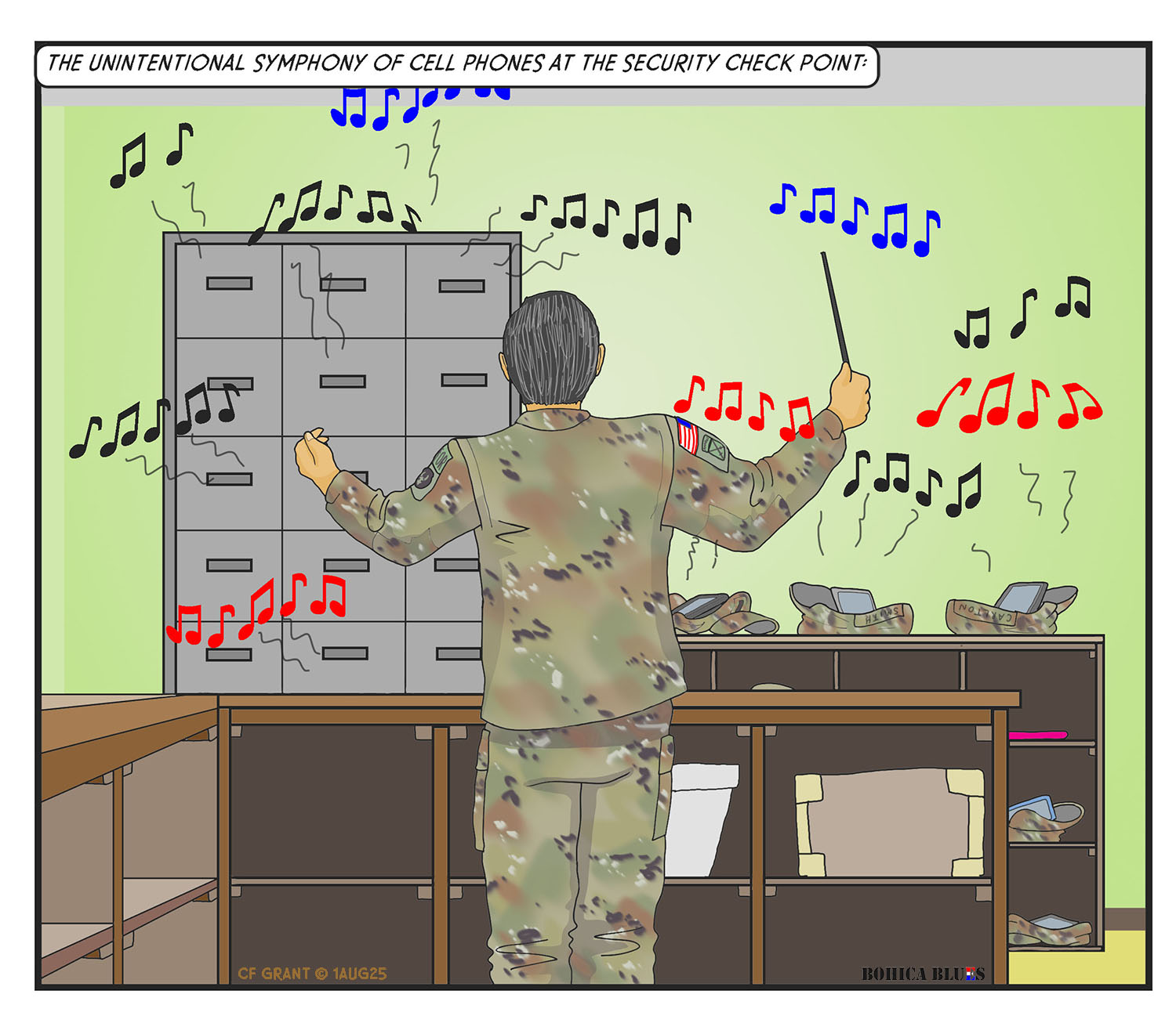 When there is a meeting, like some big important Brigade meeting where all the big-time officer, NCOs, and analysts have to be there to discuss secret-squirrel stuff, the Access Control Point becomes a storehouse of dozens and dozens of phones, tablets, music players, and so on.