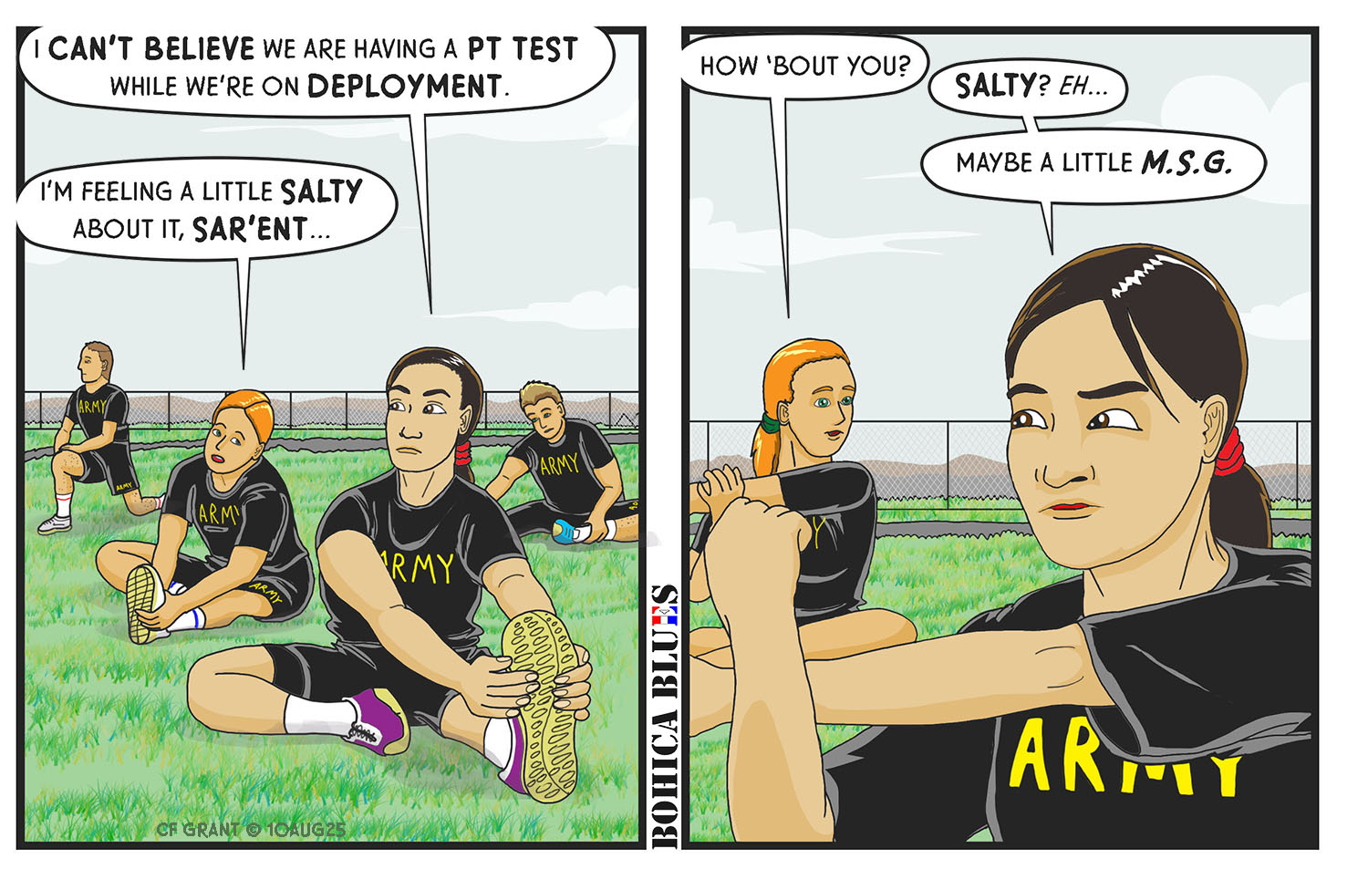 So was I salty about the PT Test? Nah… maybe just a bit of MSG, or Monosodium Glutamate. So not exactly salt, but… certainly not sweet, either.
